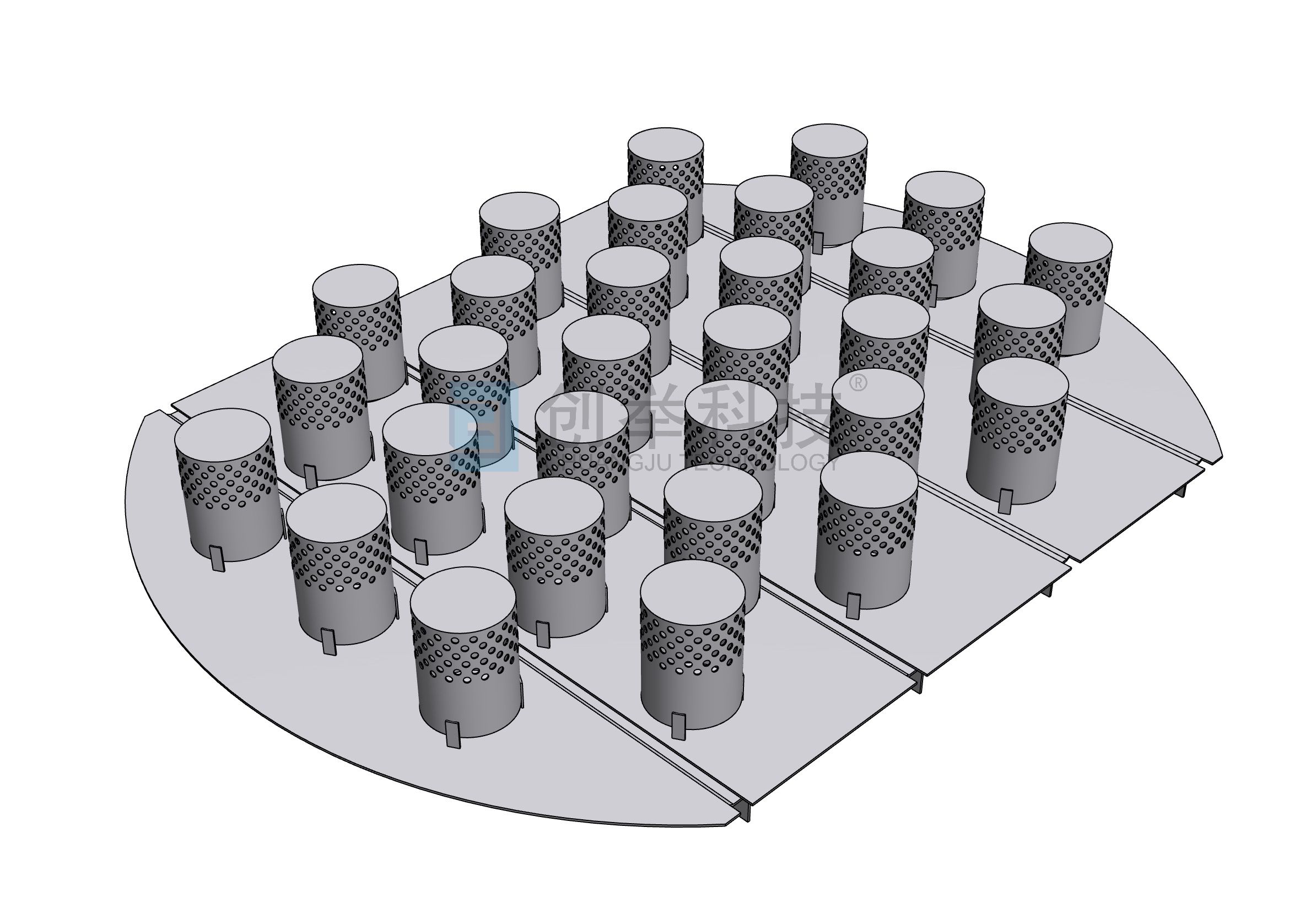 CJST系列(徑向側(cè)導(dǎo)系列噴射型塔板)是創(chuàng)舉公司在新型垂直篩板的基礎(chǔ)上研發(fā)的專利塔板,該塔板在噴射方向上具有一定的導(dǎo)向作用,彌補(bǔ)了新型垂直篩板在實(shí)際應(yīng)用中存在的一些不足。